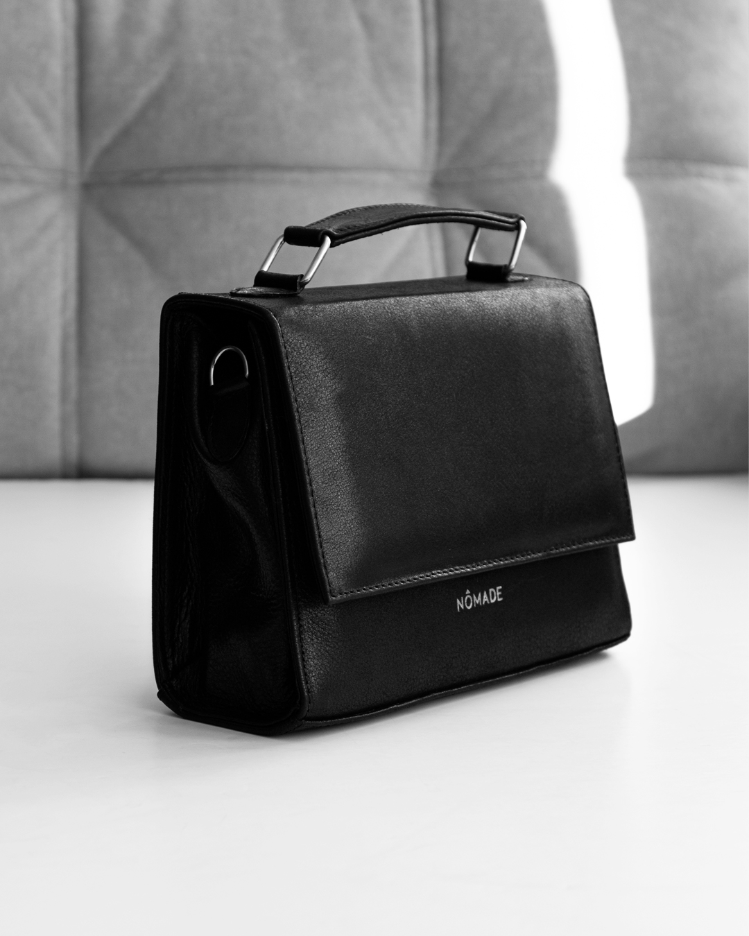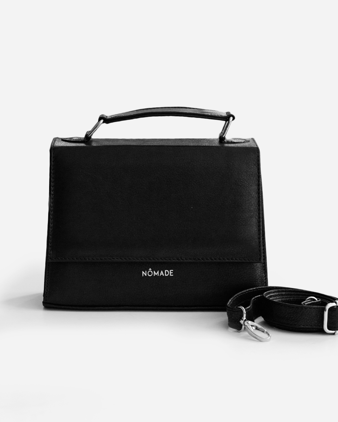 ✨ Detalles: logo NOMADE en plateado | forro de tela a tono | herrajes plateados