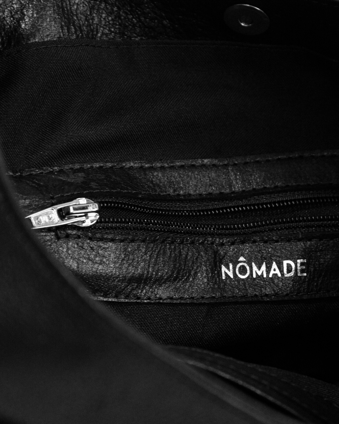 ✨ Detalles: logo NOMADE en plateado | forro de tela a tono | iman para cerrar | dos bolsillos internos